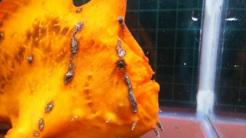 また、海水性のカエルアンコウにもいえますが、大量に餌を与えたり、大きな餌を与えると状態を崩す傾向にあります。