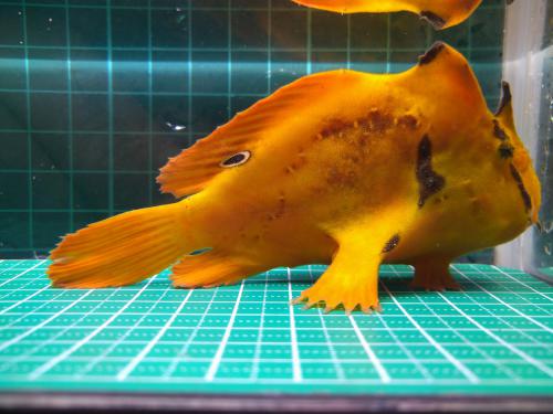 輸入業者から初めて聞いた時には「たまたま汽水域で採集されただけのカエルアンコウだろう」と思っていましたが、調べると淡水~汽水域に生息する種がいるとのことで、自分もまだまだ無知だったんだな・・・なんて思ったり・・・。